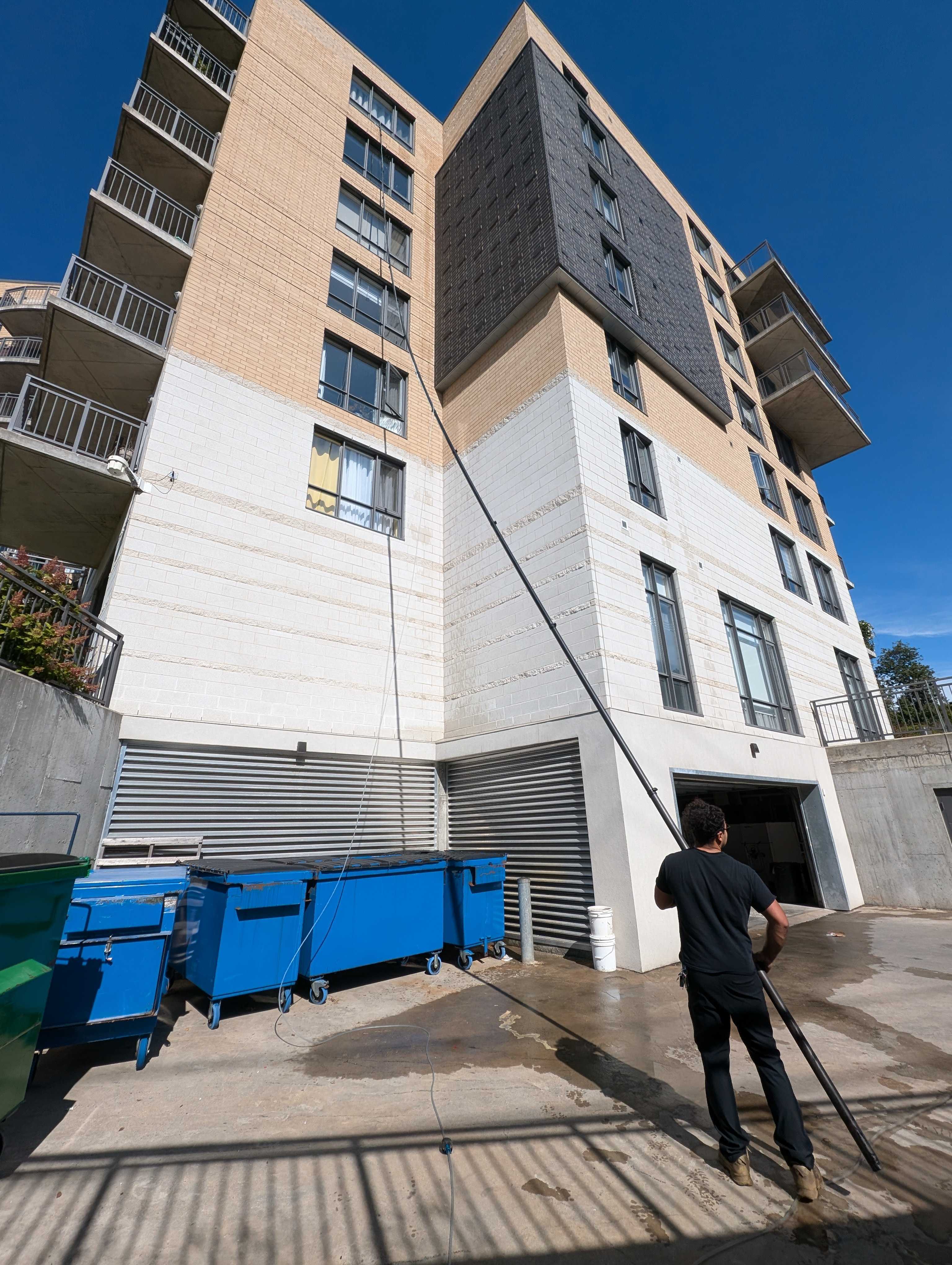 Lavage de vitres en hauteur pour bâtiments commerciaux